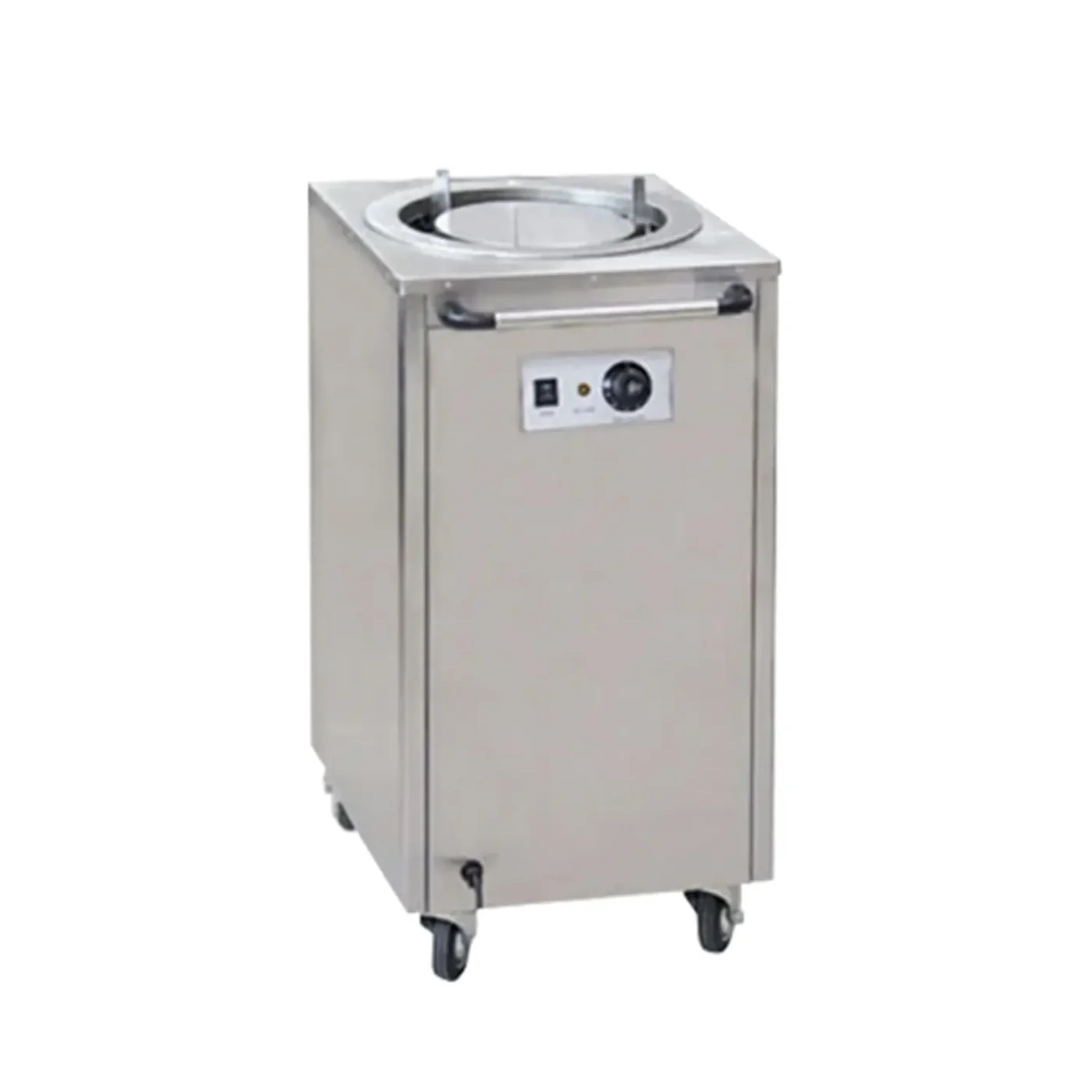 CALENTADOR ELÉCTRICO DE PLATOS SENCILLO MARCA MIGSA. FABRICADA EN ACERO INOXIDABLE. CAPACIDAD HASTA 75 PLATOS DEPENDIENDO DEL DIÁMETRO. TERMOSTATO GRADUABLE DE 30 A 85°C. LUZ PILOTO. ELEVADOR DE PLATOS. RUEDAS PARA SU FÁCIL TRANSPORTACIÓN. POTENCIA DE 0.4 KW A 110 V / 60 HZ. PESO APROXIMADO DE 31 KG.