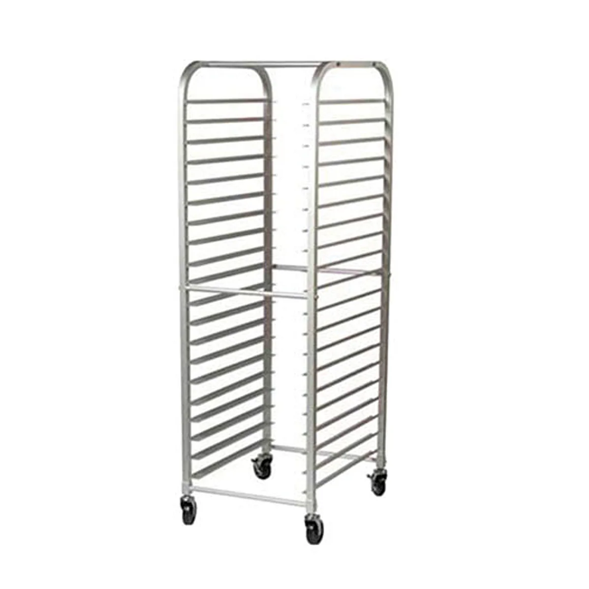 CARRO ESPIGUERO P/20 CHAROLAS EN ALUMINIO MARCA MIGSA. FABRICADO EN TUBULAR DE ALUMINIO Y GUÍAS DE ALUMINIO PARA 20 CHAROLAS DE 45 X 65 CM. MONTA SOBRE 4 RUEDAS AHULADAS DE 3” DE DIÁMETRO (2 CON FRENO).