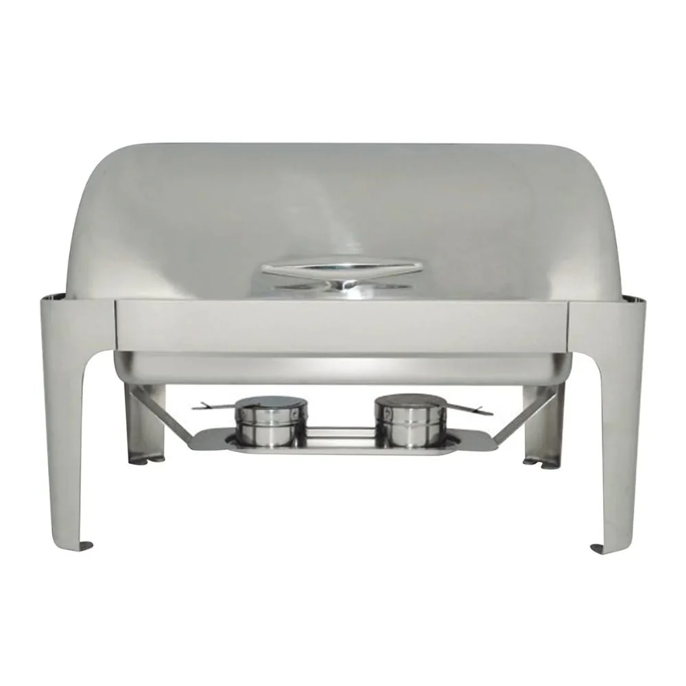 CHAFING DISH ENTERO DE 9 LTS. HIDRAULICO MARCA MIGSA. FABRICADO EN ACERO INOXIDABLE CON 1 INSERTO ENTERO Y 2 ALCOHOLEROS. TAPA CON APERTURA Y CIERRE HIDRÁULICA.