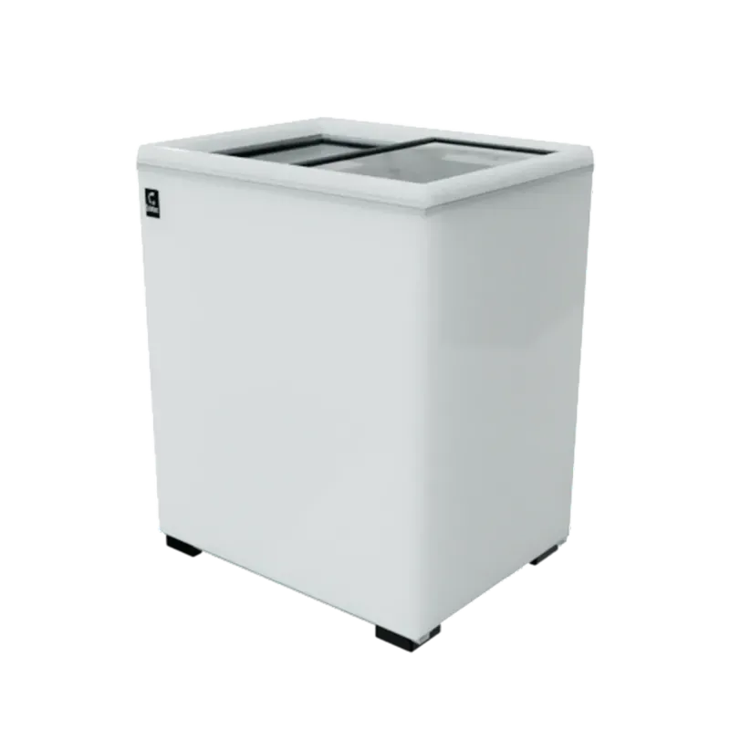 CONGELADOR PALETERO HORIZONTAL DE 2 PUERTAS DE VIDRIO COLOR BLANCO MARCA CRIOTEC. CORRIENTE 115 VOLTS/60HZ. RANGO DE TEMPERATURA DE -18°C A -24°C.