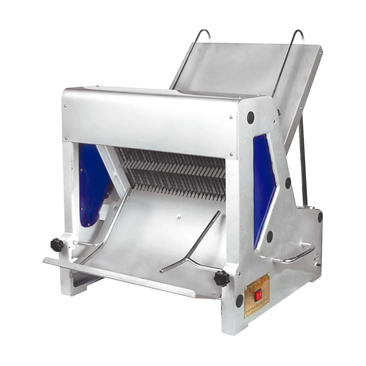 CORTADORA DE PAN DE 31 REBANADAS MARCA MIGSA FABRICADA EN ACERO INOXIDABLE. 31 CUCHILLAS TIPO SIERRA PARA REBANADAS DE 1.2 CM DE GROSOR. AJUSTADOR PARA TAMAÑO DE LA BARRA DE PAN. BOTONES PARA ENCENDIDO Y APAGADO. MOTOR DE 250 W (1/3 H.P.) A 110 V / 60 HZ.