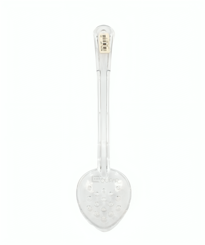 CUCHARA POLICARBONATO 13″ PERFORADA TRANSPARENTE.
