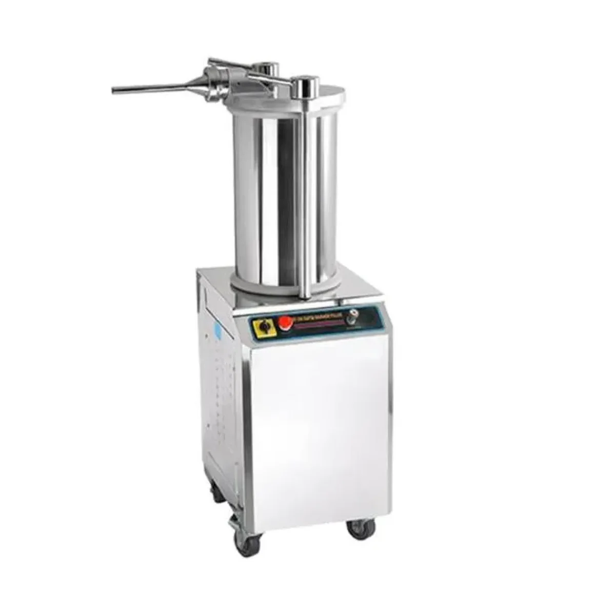EMBUTIDORA HIDRAULICA CON CILINDRO DE 350MM DE DIAMETRO MARCA MIGSA CUERPO Y CILINDRO FABRICADOS EN ACERO INOXIDABLE, POTENCIA DE 1,100 VATIOS (1.5 HP). DIÁMETRO DEL CILINDRO DE 350 MM. CAPACIDAD DE HASTA 600 KG POR HORA. PISTÓN DE EMPUJE Y RETROCESO. CON 4 RUEDAS CON FRENOS, BOTÓN DE PARO DE EMERGENCIA. EMBUDOS EN ACERO INOXIDABLE, CORRIENTE A 110 V / 60 HZ. PESO BRUTO 210 KG / PESO NETO 180 KG. CERTIFICADO INTERNACIONAL CE.