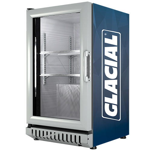 ENFRIADOR VERTICAL BAJO MOSTRADOR 1 PUERTA DE CRISTAL 3 PIES CUBICOS. COLOR BLANCO. MARCA GLACIAL.CORRIENTE 115VOLTS/60HZ. RANGO DE 0°C A 4°C. MEDIDA DE 0.42 X 0.5 X 0.68 MTS.