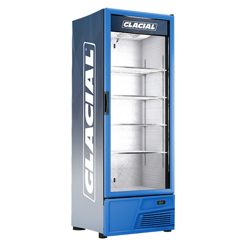 ENFRIADOR VERTICAL DE 1 PUERTA DE CRISTAL 22 PIES CUBICOS COLOR BLANCO MARCA GLACIAL. CORRIENTE 115VOLTS/60HZ. RANGO DE 0°C A 7°C. MEDIDA 0.70 X 0.80 X 2.01 MTS