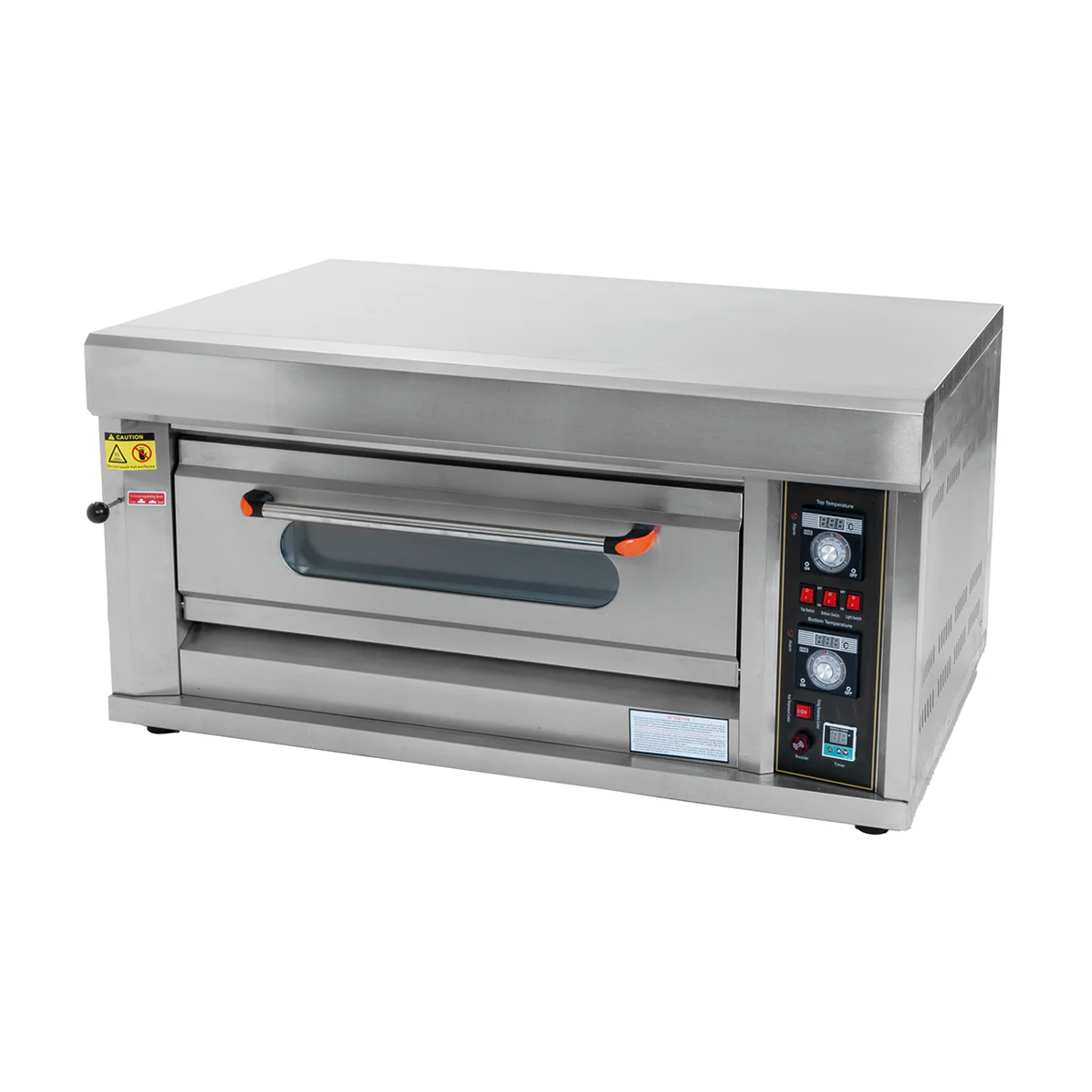 HORNO A GAS DE 1 CHAROLA MARCA MIGSA. GABINETE INTERIOR Y EXTERIOR EN ACERO INOXIDABLE, CONTROL DE TEMPERATURA DE 50 A 300°C, CONTROL DE TIEMPO, VENTANA DE CRISTAL, ILUMINACIĂN INTERIOR. PESO NETO APROXIMADO DE 48 KG.