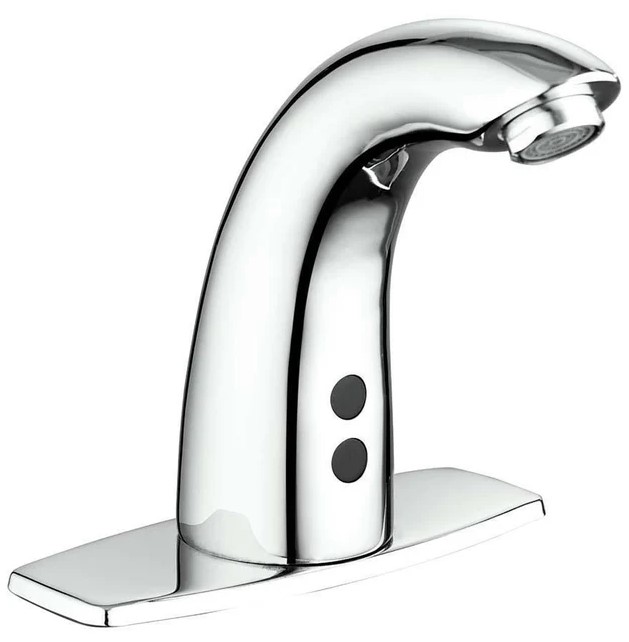 LLAVE ELECTRÓNICA CON SENSOR PARA LAVABO MARCA MIGSA. VÁLVULA CON SENSOR DE MOVIMIENTO PARA AHORRO DE AGUA. OPERA POR MEDIO DE BATERÍAS (DC) Y/O CORRIENTE A 120 V (AC), PARA MONTAR EN LAVABO.