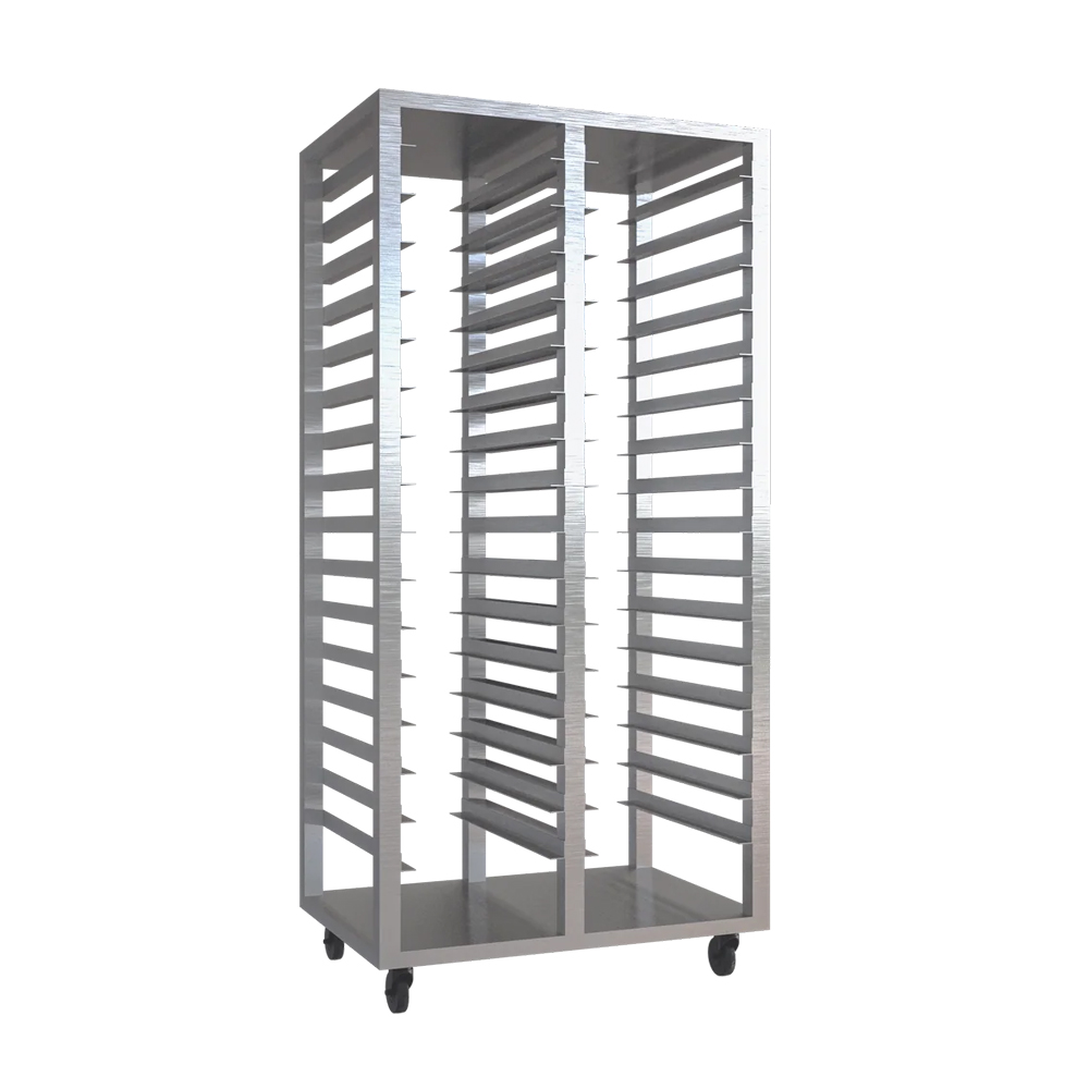 RACK DE CHAROLAS DOBLE COLUMNA EN ACERO INOXIDABLE